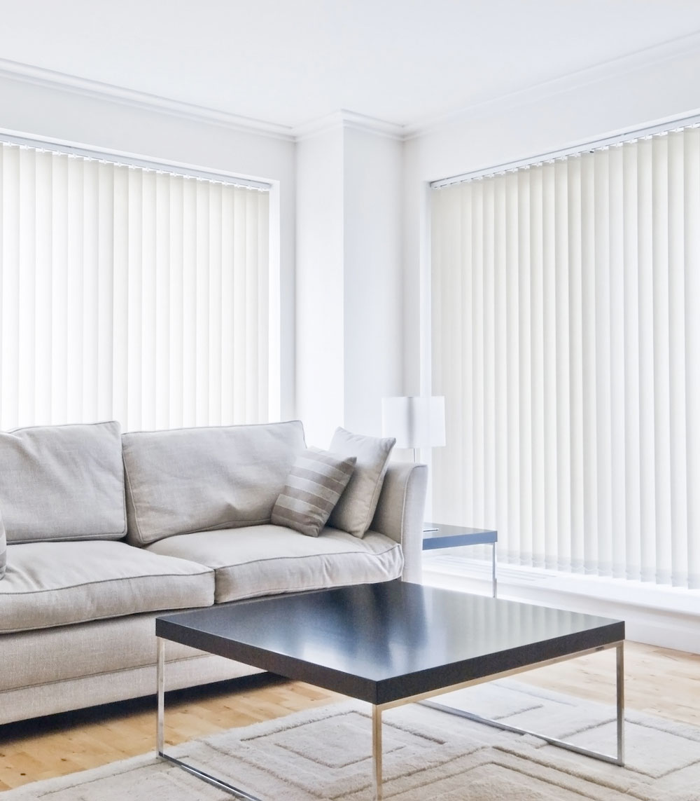 Las cortinas verticales son fabricadas con distintos tipos de telas, texturizadas traslúcidas, screen, blackout, etc. Permiten la entrada de luz en la habitación y nos da privacidad desde el exterior.